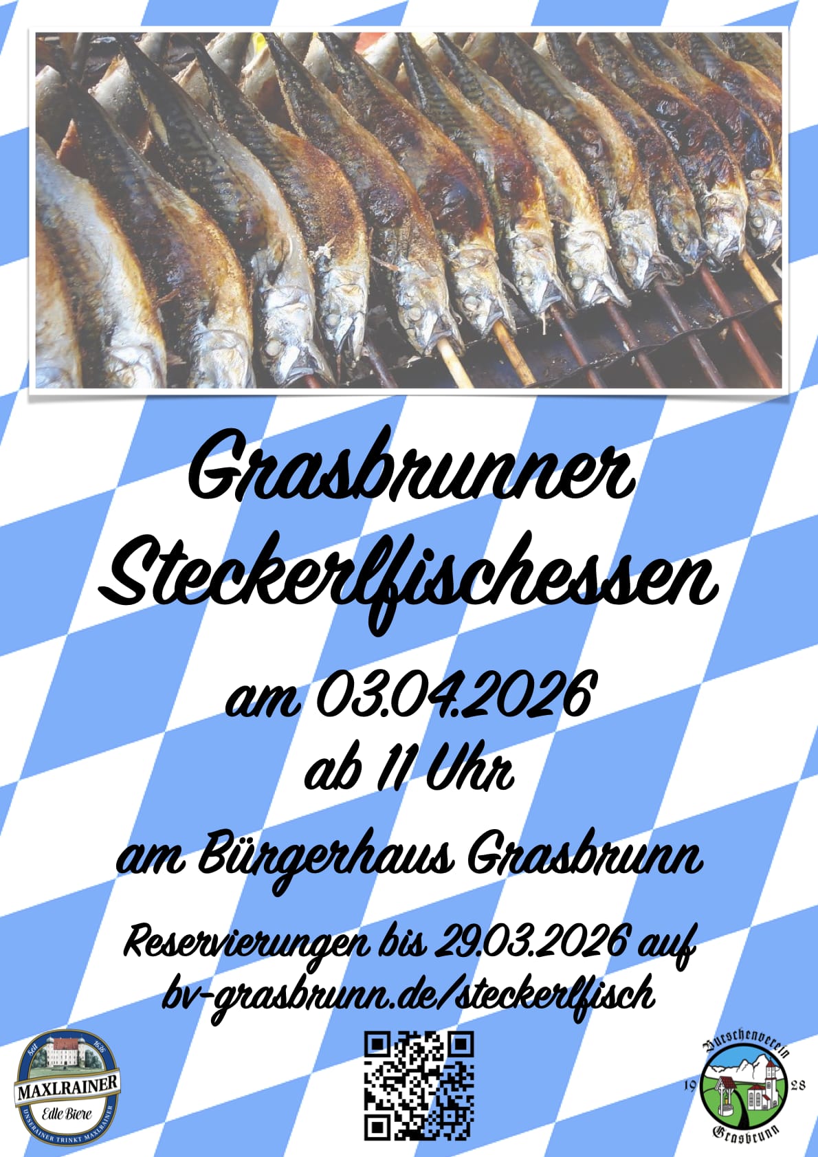 Zwecks der Planung würden wir uns freuen, wenn ihr eure Fische unter bv-grasbrunn.de/steckerlfischessen/ über das Formular oder alternativ per E-Mail an steckerlfisch@bv-grasbrunn.de vorbestellt.